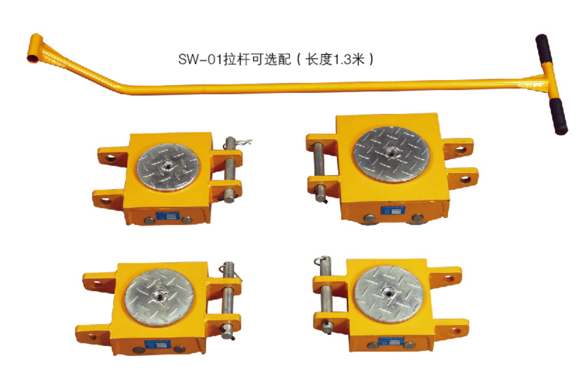 ● 在选择托辊的承重能力时,要将重型货物的重量除以3.举例来说,如果你要搬运一台9吨重的设备,请选择4台SW30(***承重为3吨)