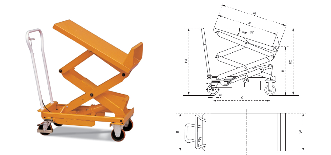 The ergonomically designed worktop automatically tilts to an angle of 45 ° when raised, so that the objects are always in a position easy for workers to touch without bending down, so as to improve work efficiency and reduce workers' labor intensity