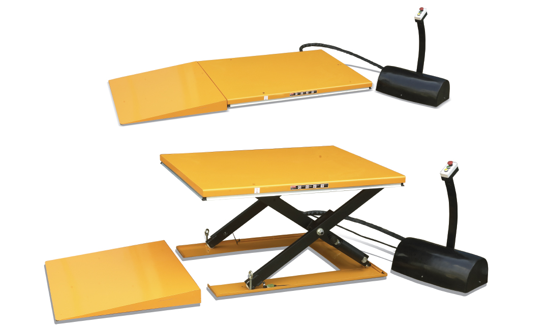 Model | Rated load capacity | Platform size | Base size | Table top min / max height | Lifting time | Power parameters | Net weight |
